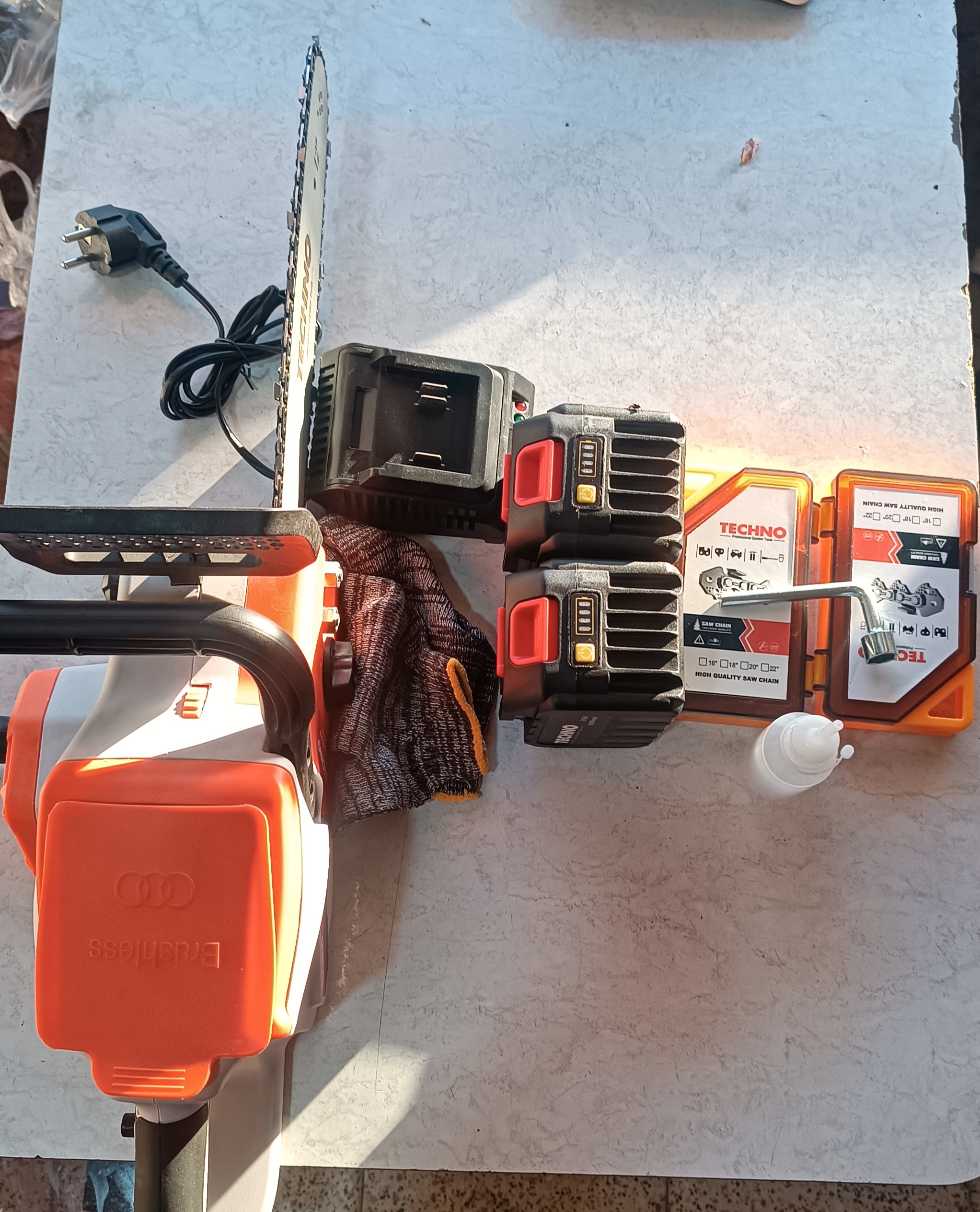 برندتکنواندازه30سانتیولتاژ باتری2عددباتری لیتیومی 21ولت6000آمپرلوازم جانبیآچار شمع ،2عددباتری لیتیومی ،2عددزنجیرترمز اضطراریداردسیستم روغنکاری اتوماتیکدارد